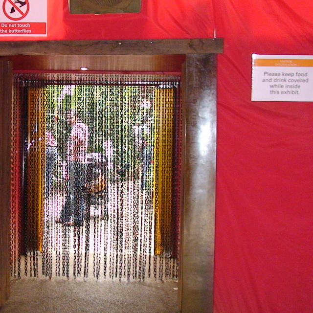 出入り口は鳥が飛び出さないようにプラスチックチェーンが利用されていました。