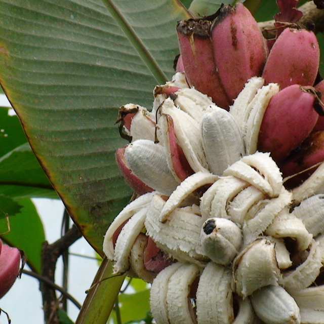 室内はとても暖かく、バナナも咲いて?ました??!!(右の写真)