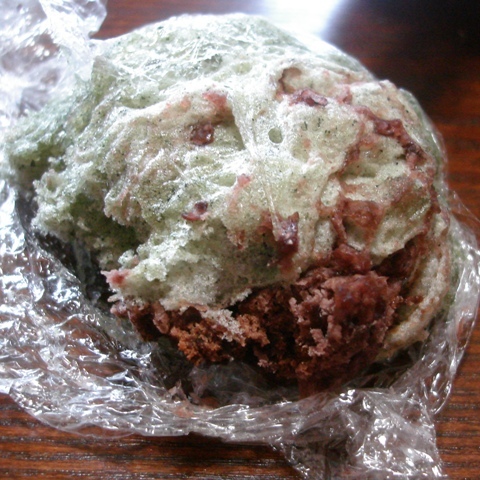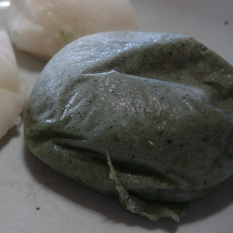 ランチに食べた「餡入りの草餅」(左側の写真)