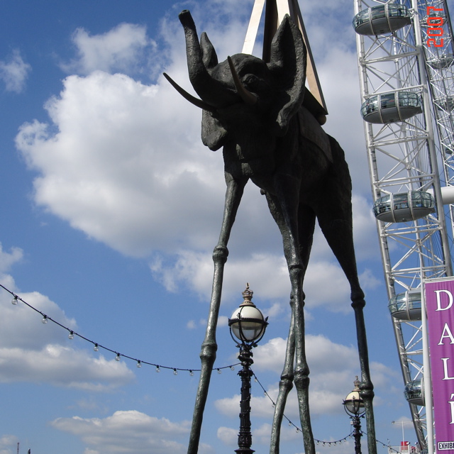 やっぱり不思議な芸術家です。象の体でキリンなあしの銅像!