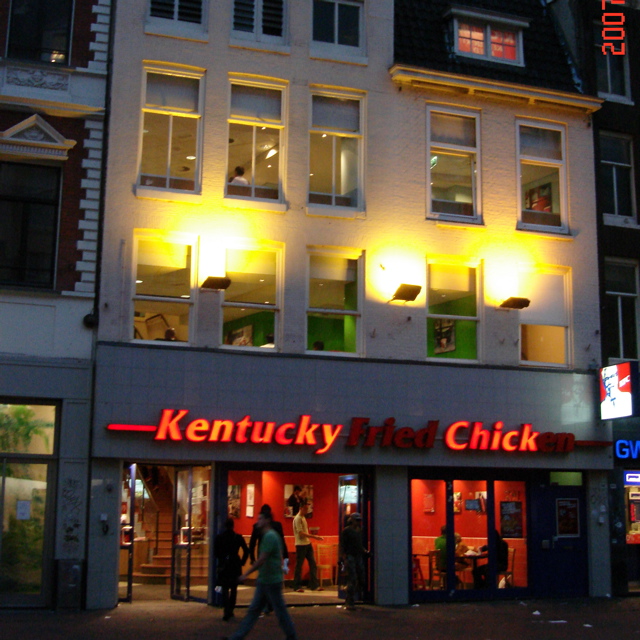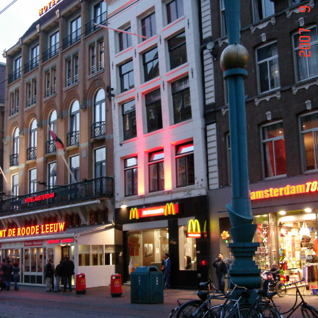 ちなみに、アムステルダムにあるマクドナルドとケンタッキーの夜の風景です。