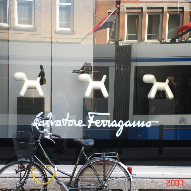 フェラガモのショーウィンドウをパチり!この犬の人形が気になります!