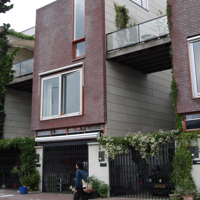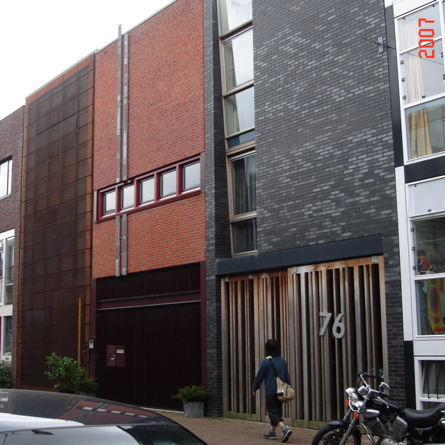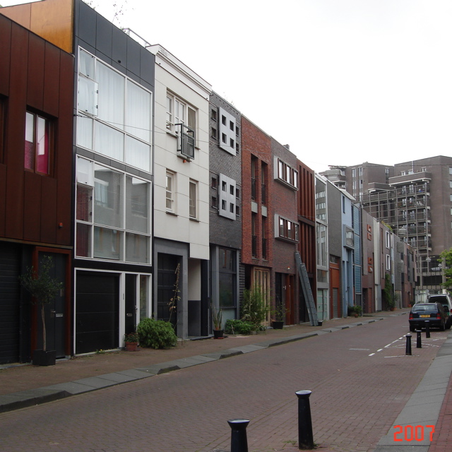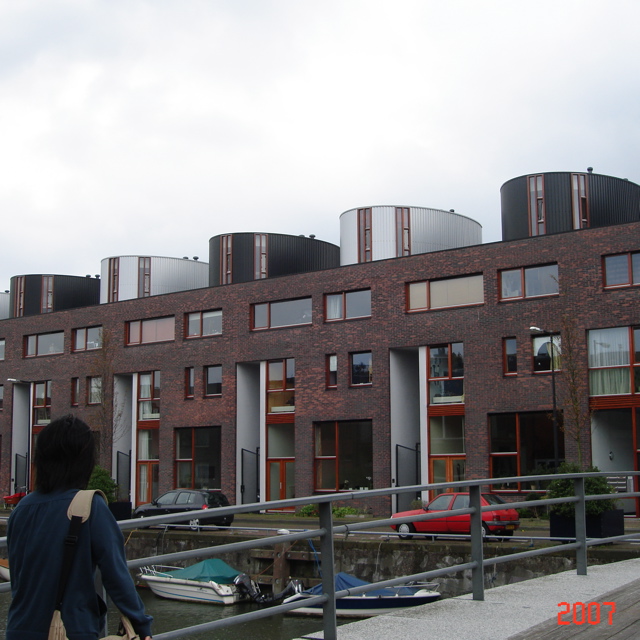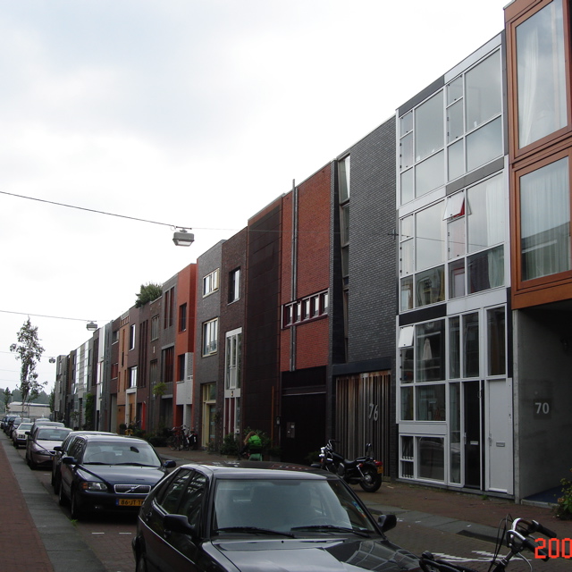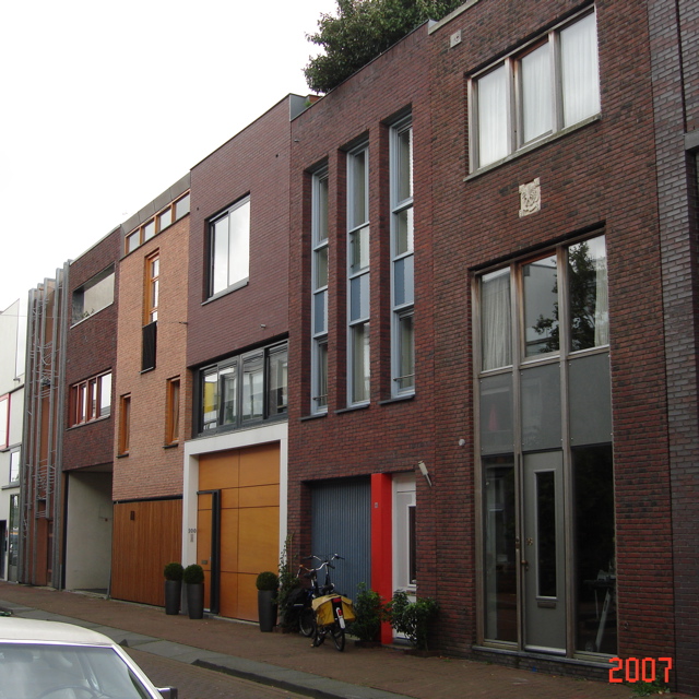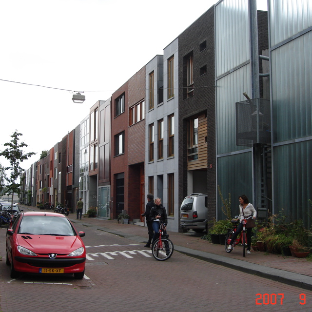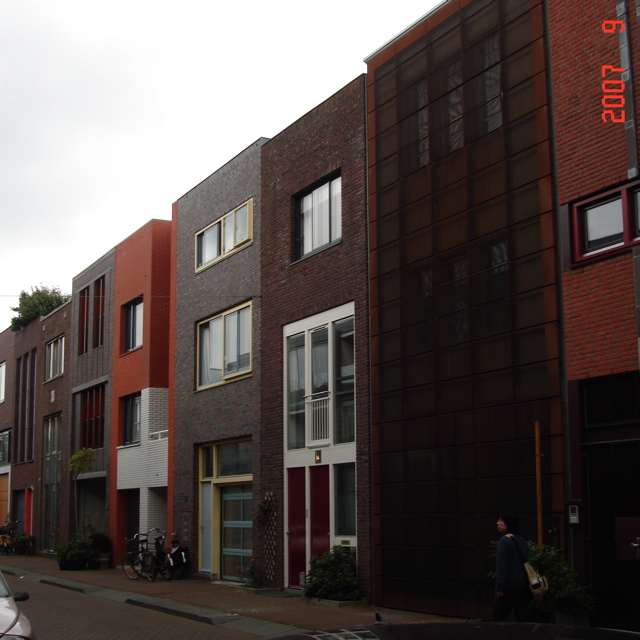 モンドリアン的な色使いの住宅もありと、歩いていて飽きのこない街並です。