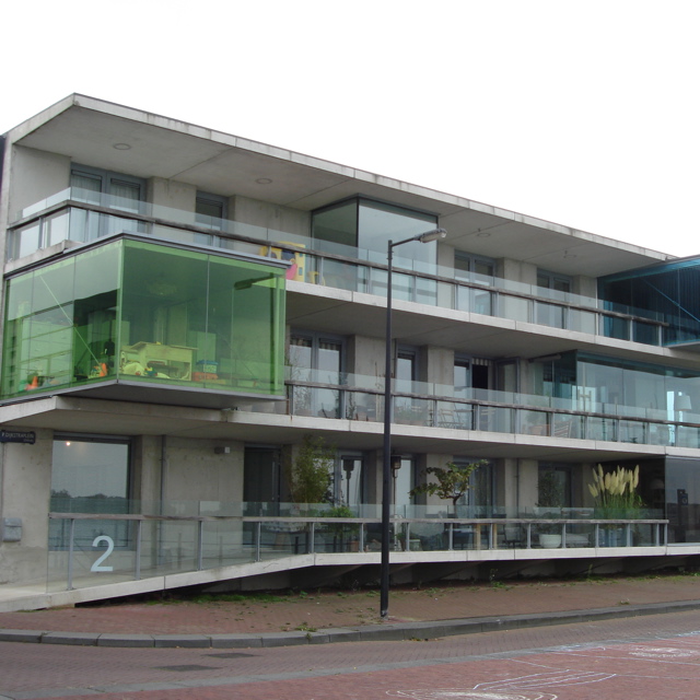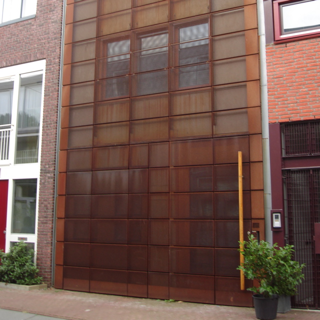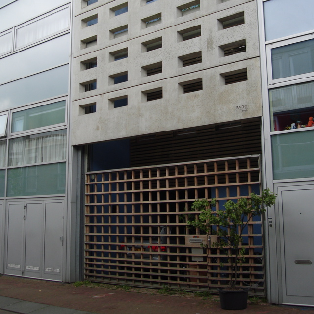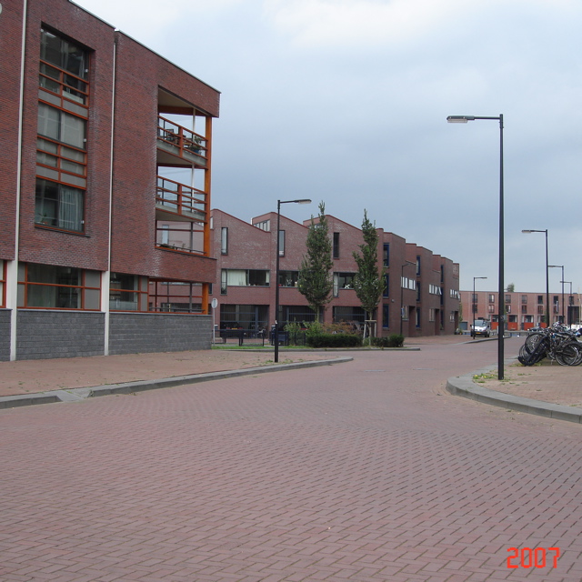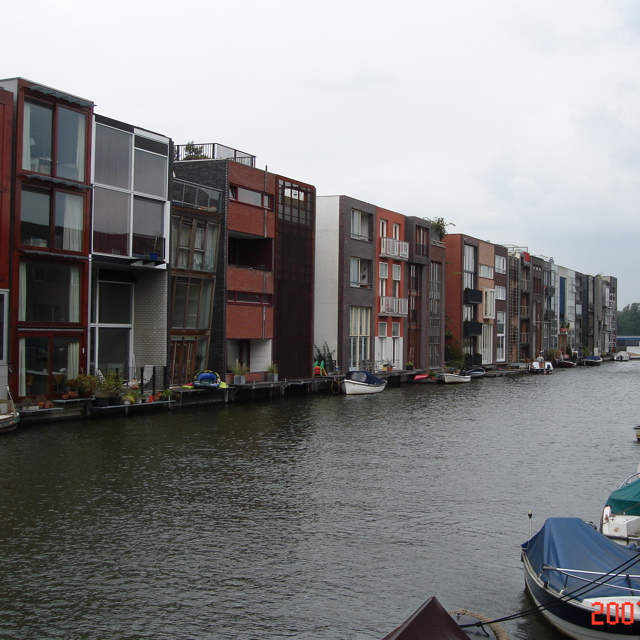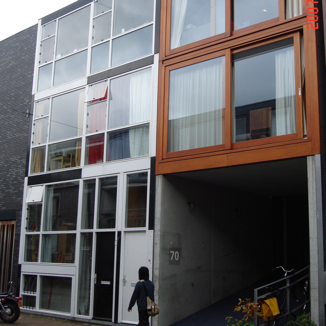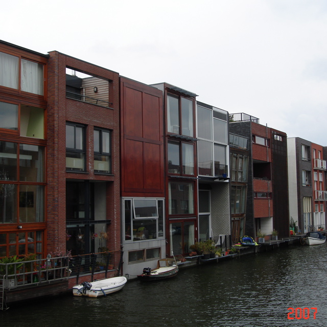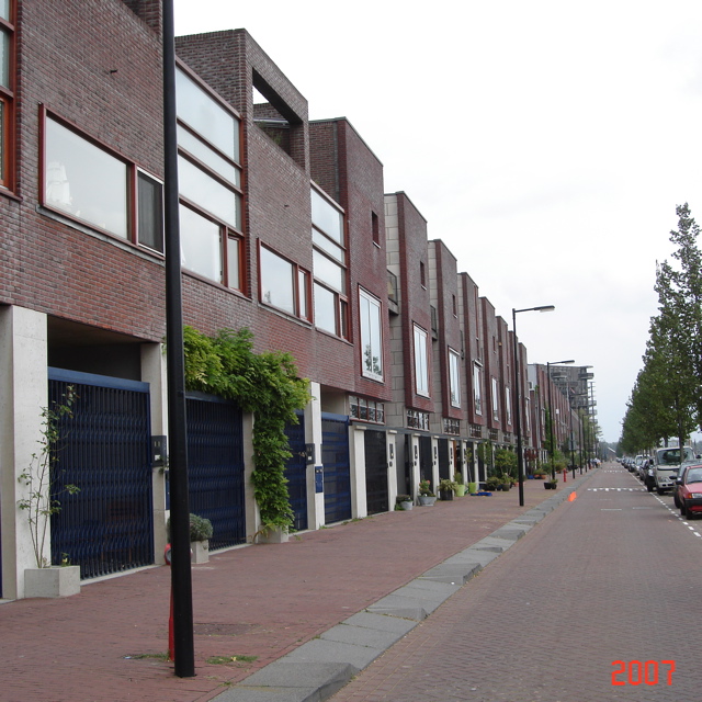 モンドリアン的な色使いの住宅もありと、歩いていて飽きのこない街並です。