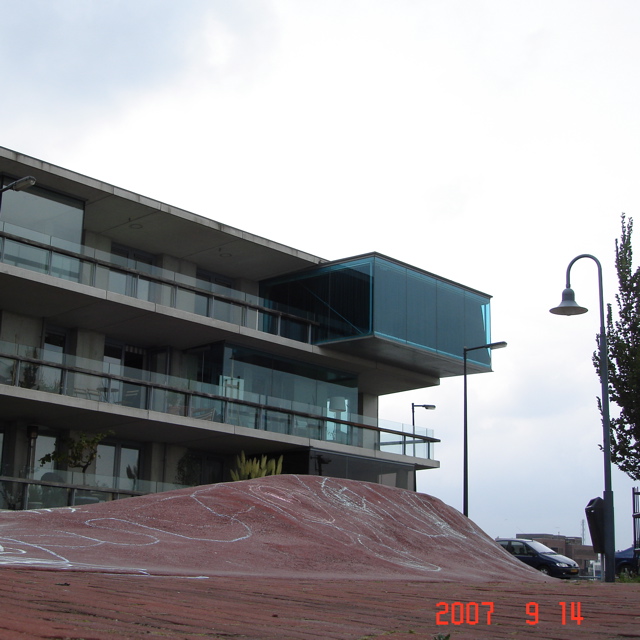 橋を渡ってすぐの集合住宅はとくに渡る前とは大きくは変わらないのですが、