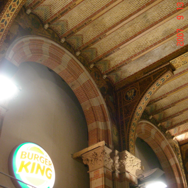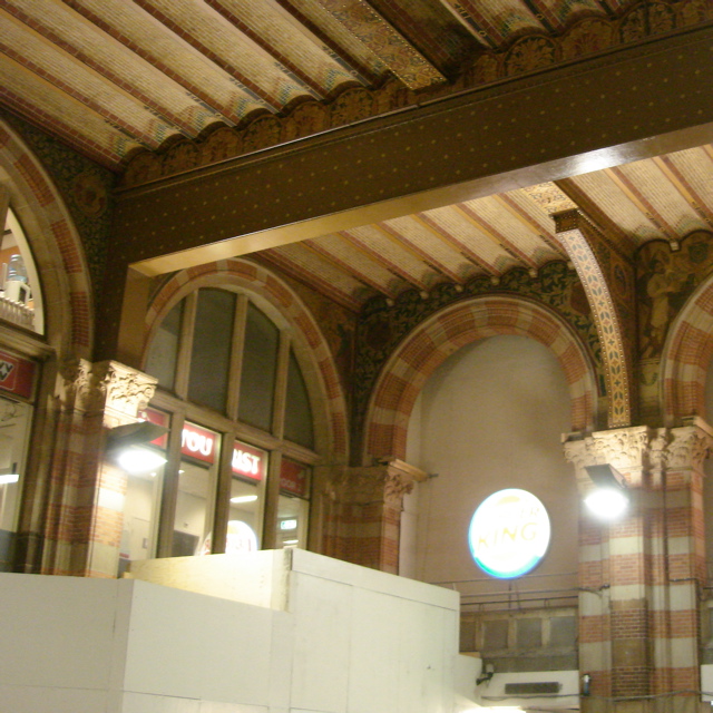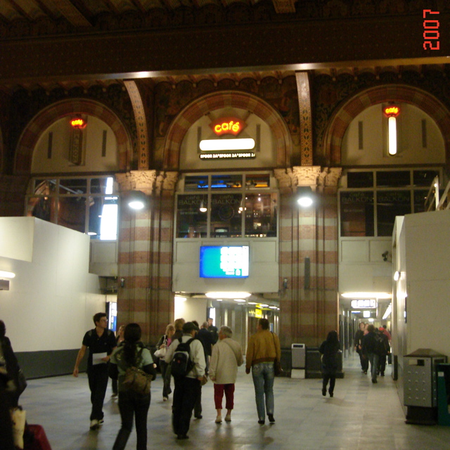 こちらの駅舎、列車をおりてコンコースから外へ出て行くときには、地下に潜って行きます。