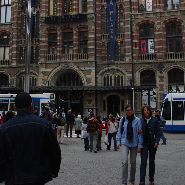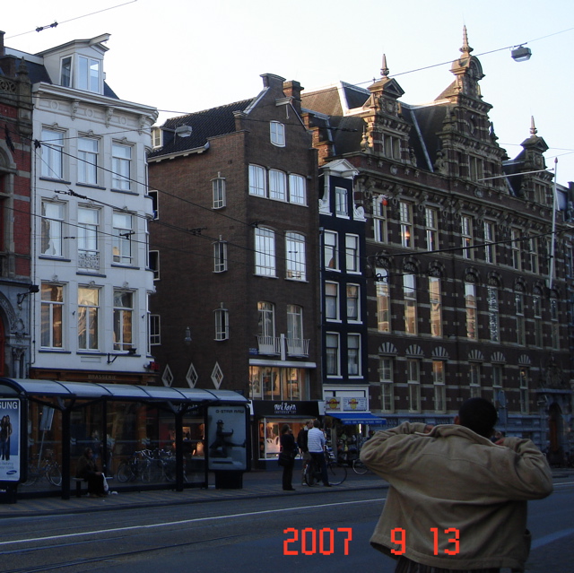 ダム広場からすぐ側にある繁華街の中に立っています。