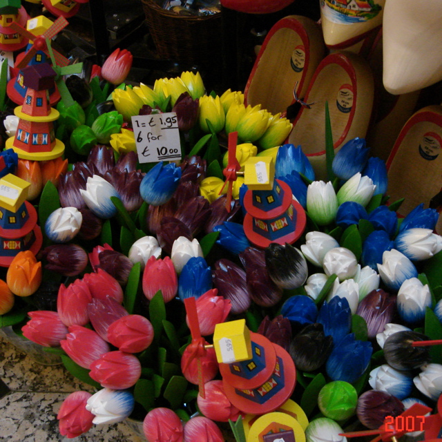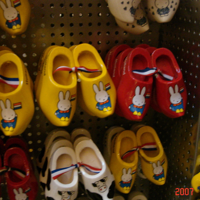 1階では、これぞオランダ的なお土産の代表格!木靴とチューリップ造花がありました!
