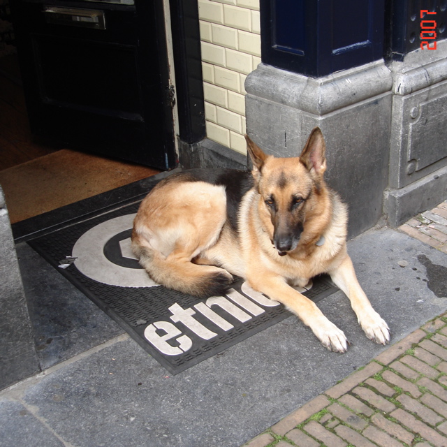 シェパードが店番をしてました!大型犬でリード無しでいいとは・・・
