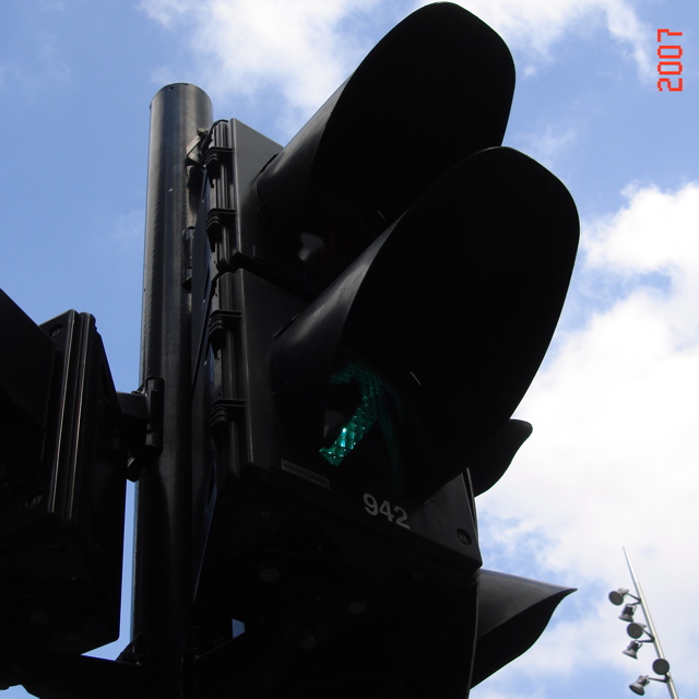 街中の標識のトップには、可愛い人形があしらわれていました。