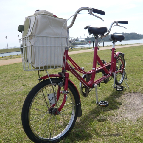 池のほとりでお弁当を食べ、パターゴルフをした後は”2人乗り”チャリンコで公園を一周。