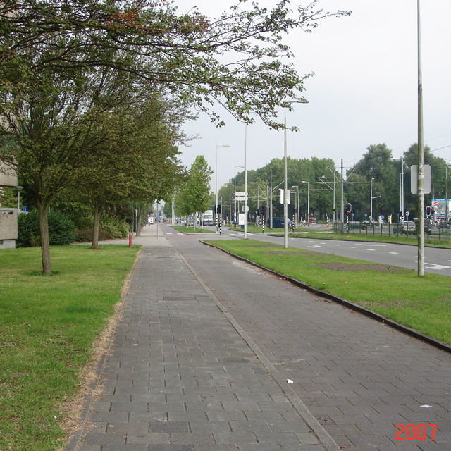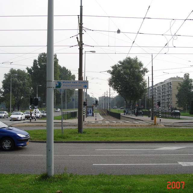 左がトラムで、中央と右の写真がトラム下車駅周辺の様子です。
