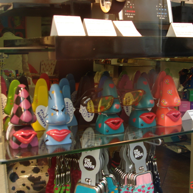 右:眼鏡スタンドもかなり奇抜な色と形が使われまs締めています。