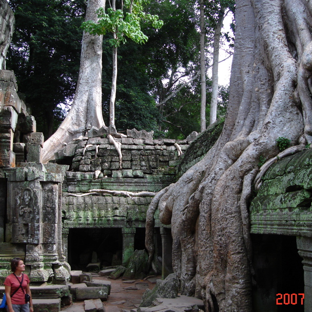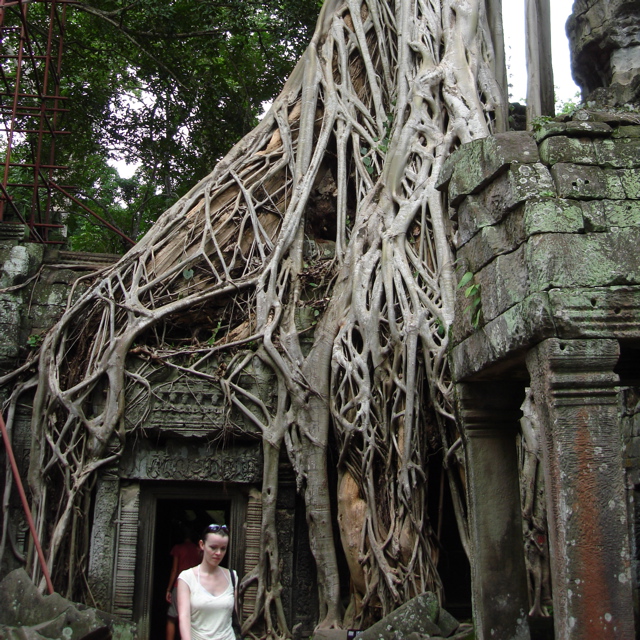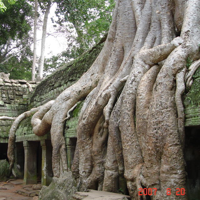 さらに奥に進むと、あたかも遺跡が木に食べられているような光景が広がります!