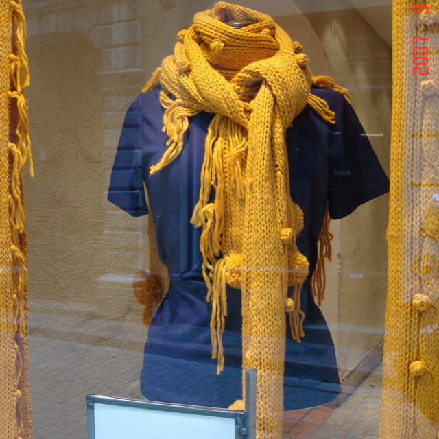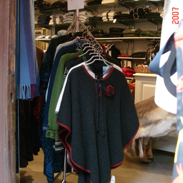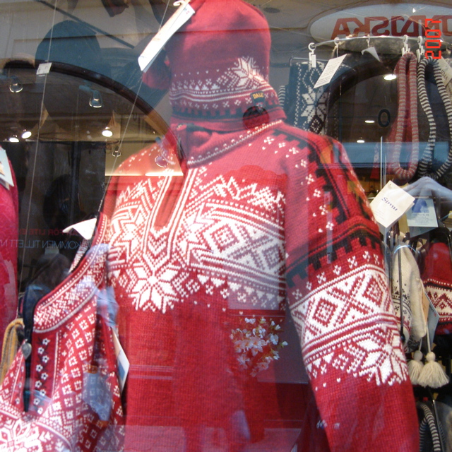 (左)スウェーデン国旗カラーのセーターとマフラー