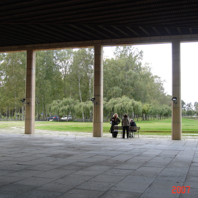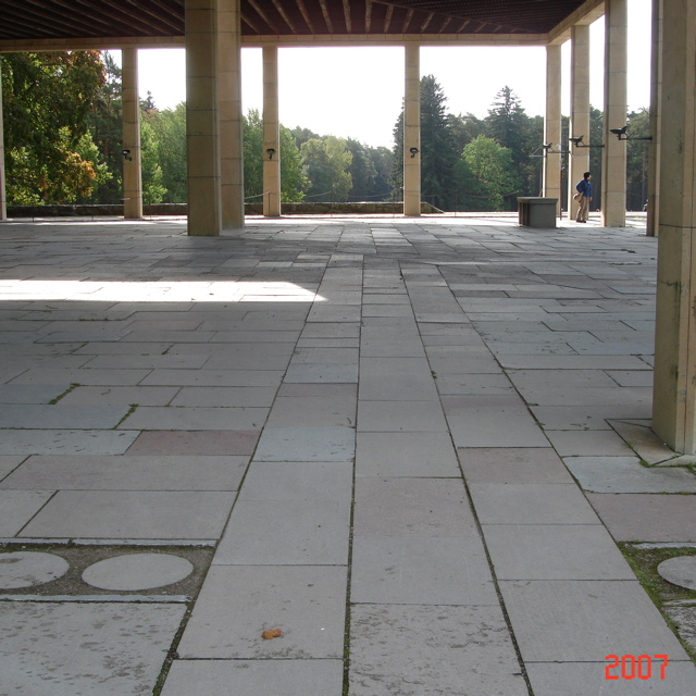 こちらは、ホールが奥に建築されていて、その手前には、柱で囲まれた空間となっています。