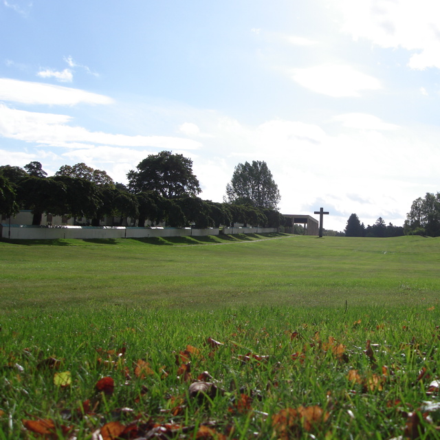 森の十字架の別名にもあるように、丘と森林をもつ自然の中に火葬場はあります。