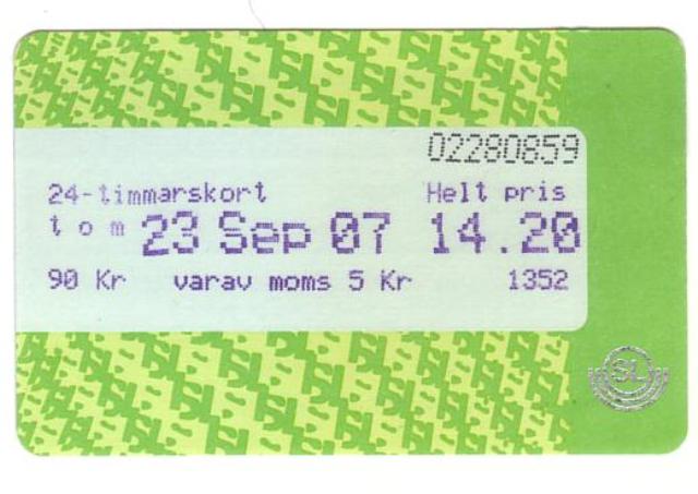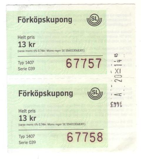 1ゾーン(中心部)乗るには13SEKのチケットが2枚必要で、