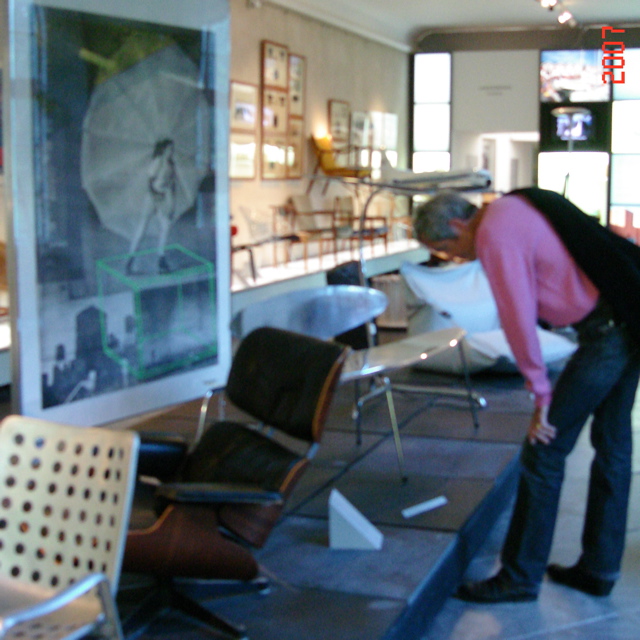 こちらが、展示室の様子です。欧米の紳士がイームズのチェアに興味津々!
