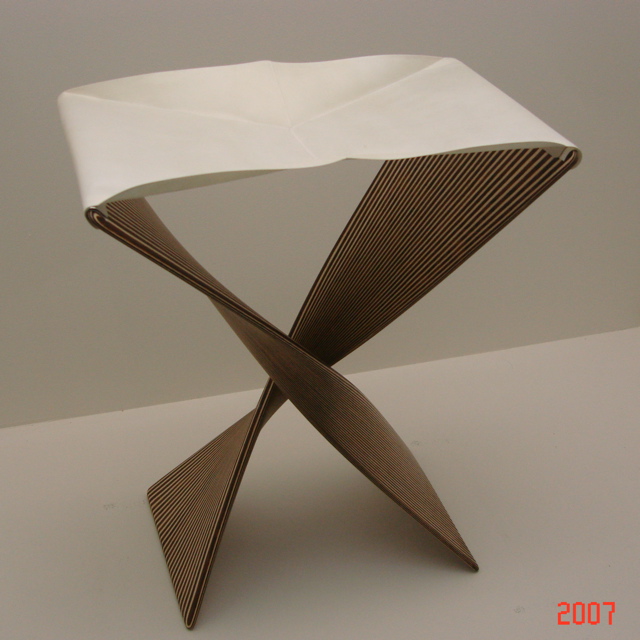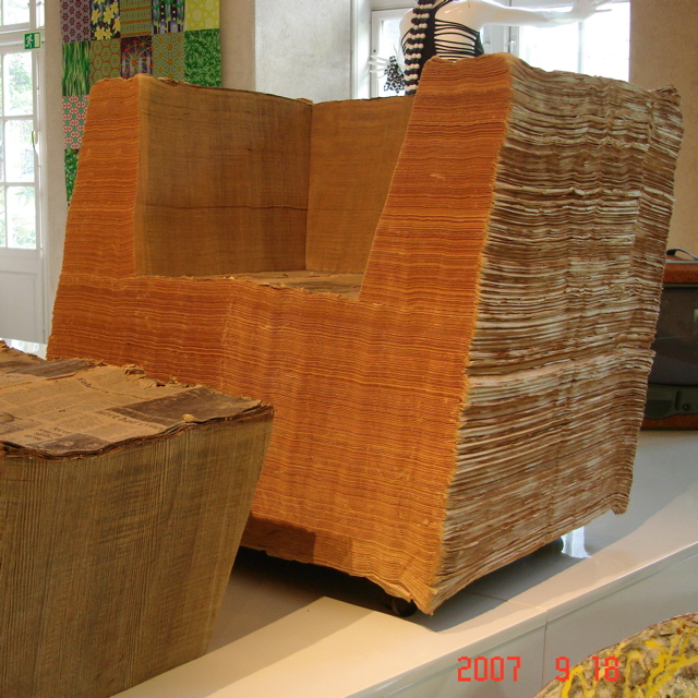 中央と右の作品は、紙でできた椅子です。