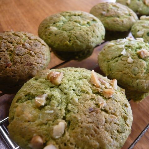 「ホワイトチョコ入り抹茶マフィン」を約40個焼きました。