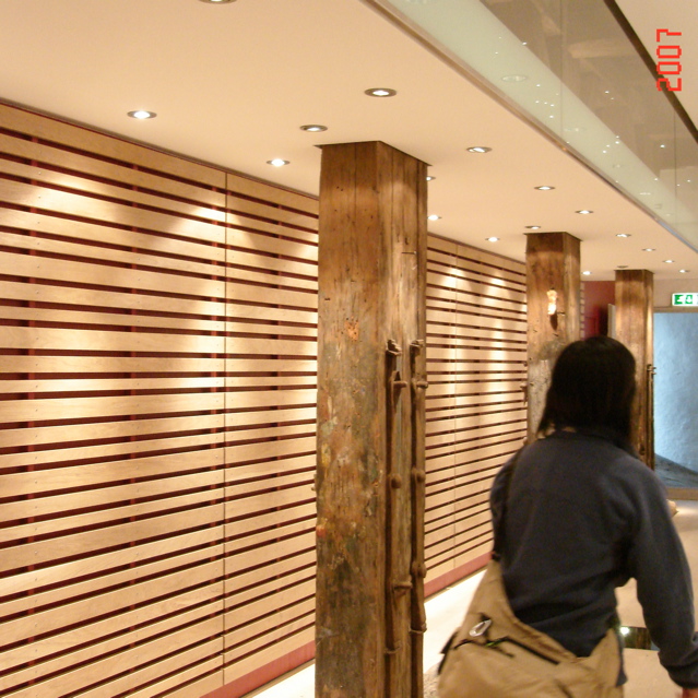 歴史を感じる柱が、柱の仕事をしながら展示されています。