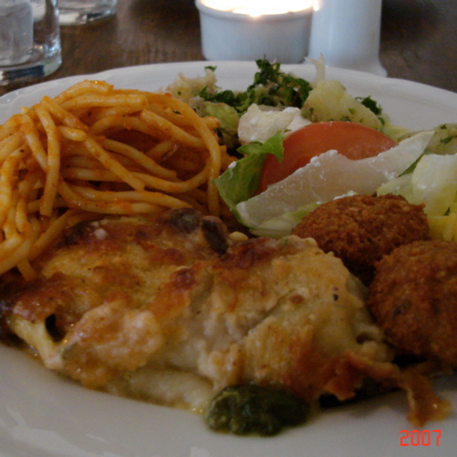 味はまずまずで、料金は飲み物が別途料金で、料理が69DKK(約1,700円強!)/人