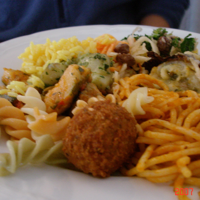 バフェでの食事風景、少々欲張ってとりすぎでしょうか?