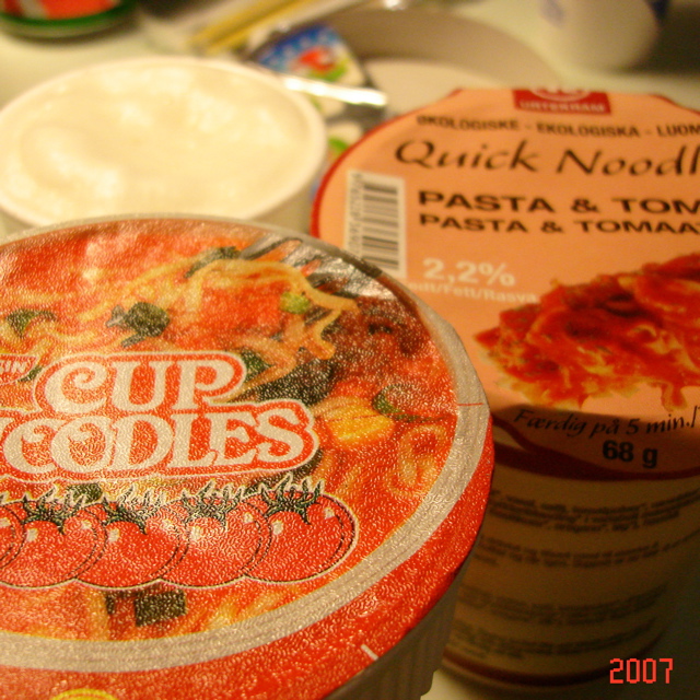 右の写真がパスタのカップ麺。まずまずの味でした。