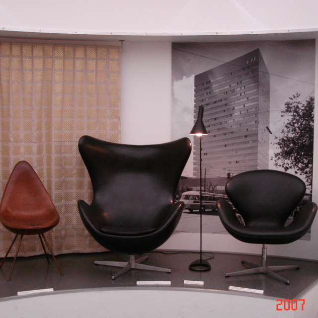 右の写真は、博物館で展示されていたスワンチェアです。