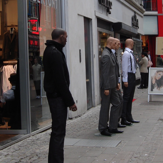 モンドリアンのポスターをどれにするか青空の下で検討しているようでした。