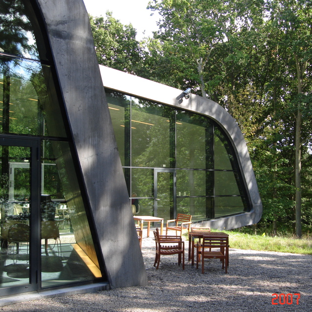 こちらの美術館別館は、イラク出身の女流建築家の作品です。