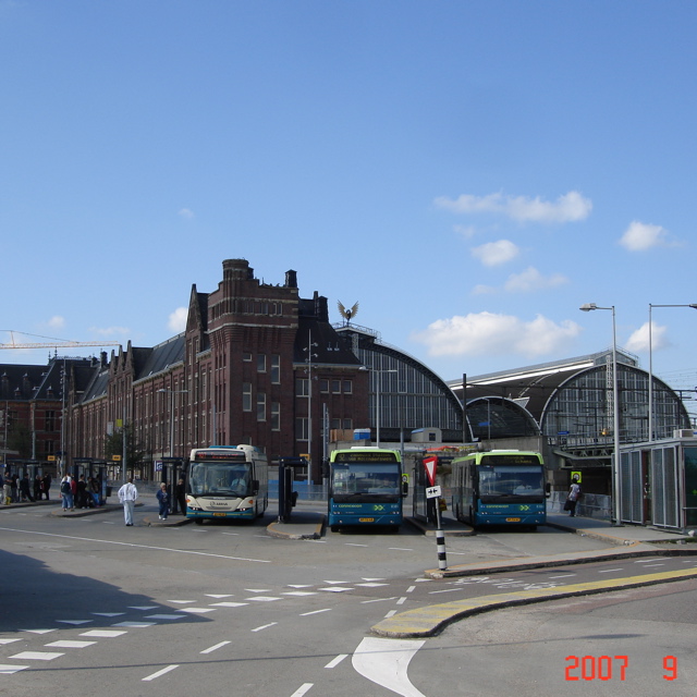 左/中央の写真がアムステルダム中央駅!