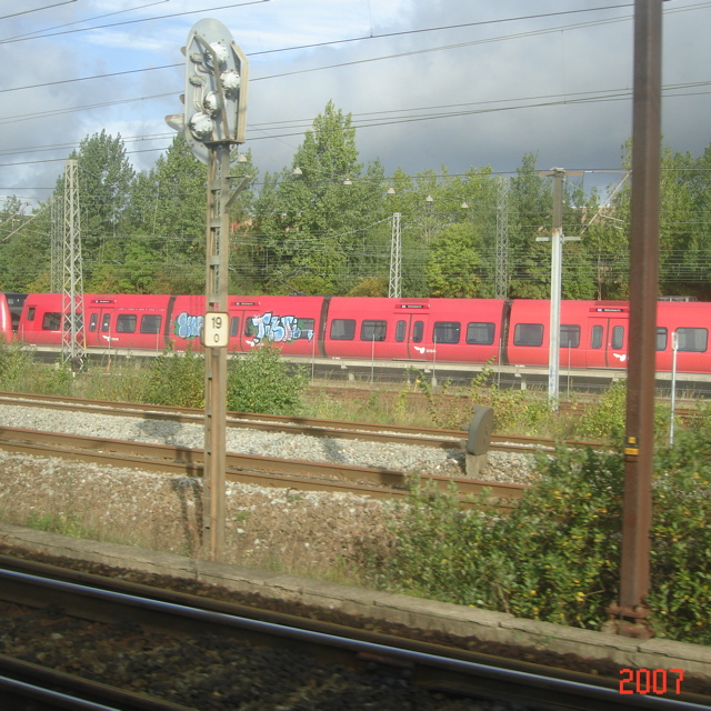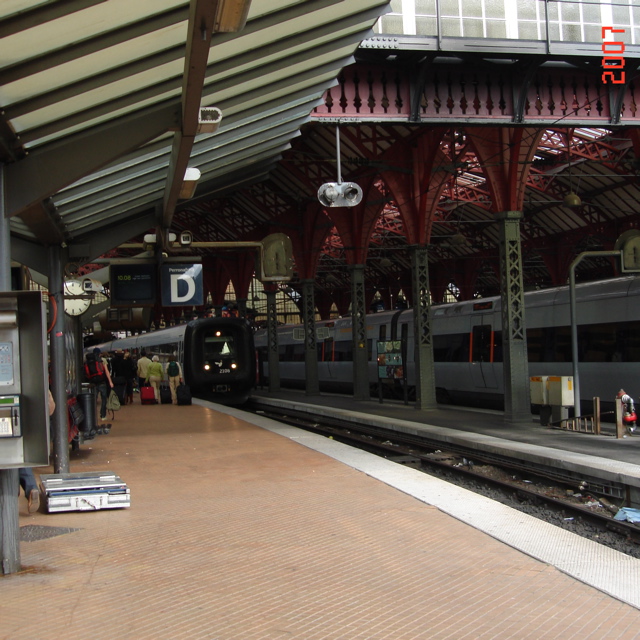 こちらが到着したホーム、右写真に写っているのが、デンマークの列車!