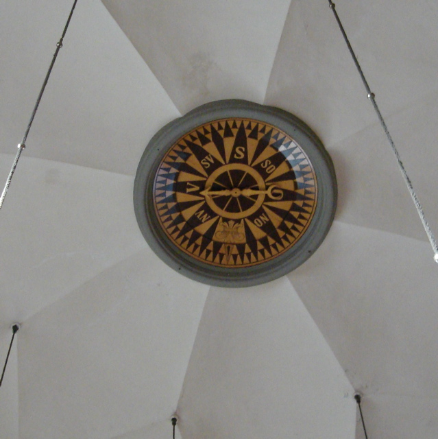 左の写真は、駅の天井に取り付けられていた方位を指し示すマーク!
