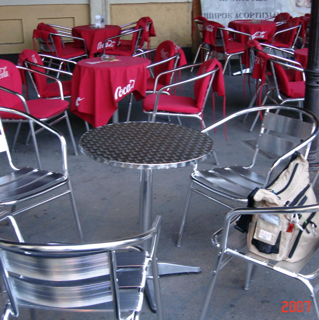 就寝は、駅コンコースにあった、テーブルと椅子を利用して、