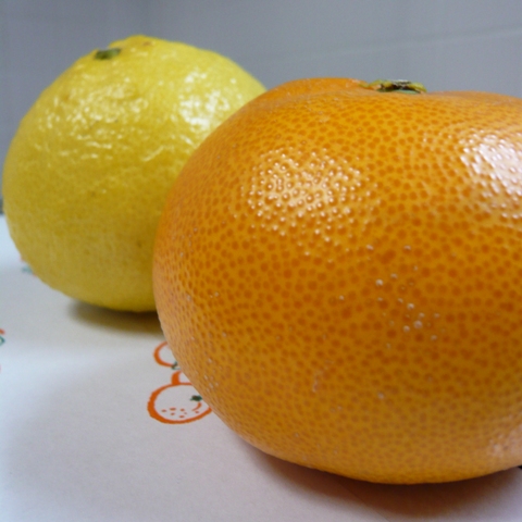 ちなみに、黄色いみかんは「はるか」、オレンジのみかんは「せとか」だそうです。