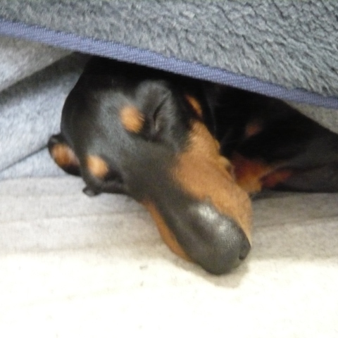 そして、ドン様はホットカーペットの間にもぐって爆睡中です。