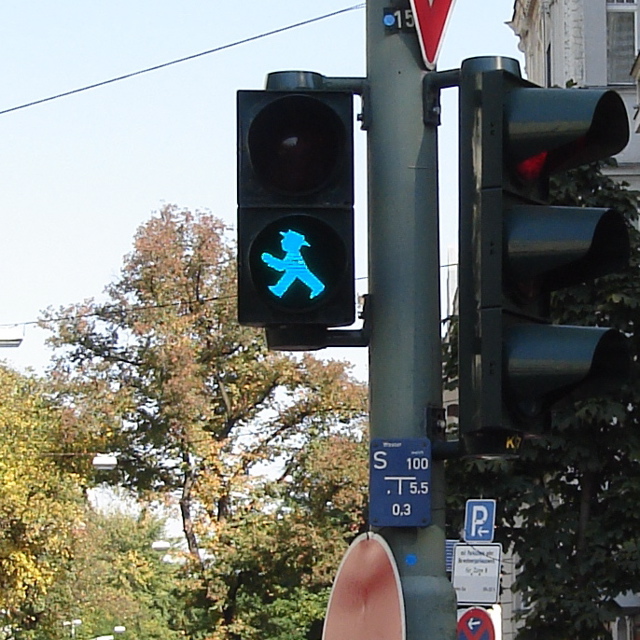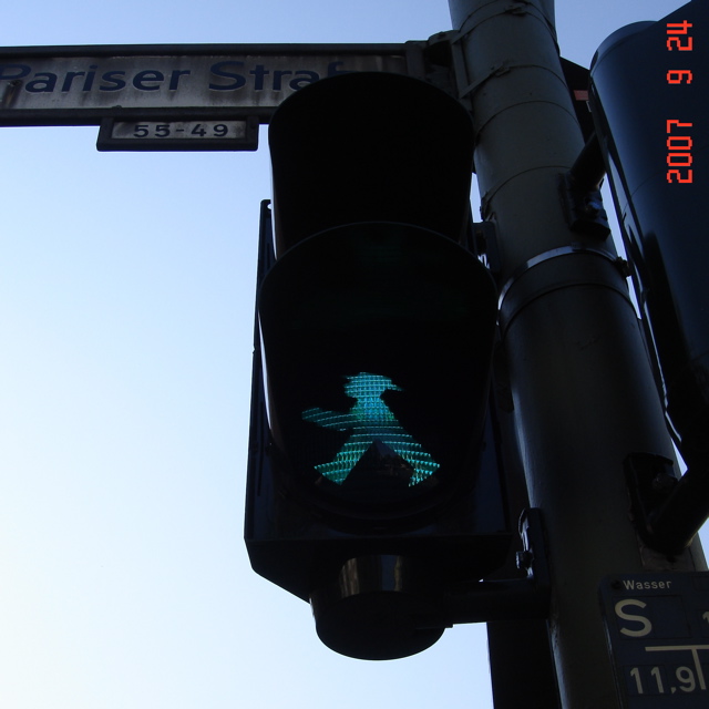 ベルリンの街を散策しているとまず目についたのが歩行者用信号でした!
