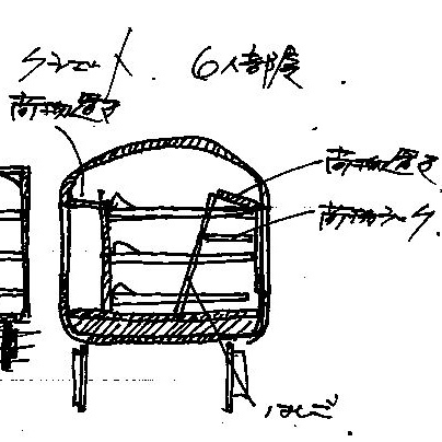 (右:図面上の荷物置きの下部が列車内の廊下になります)