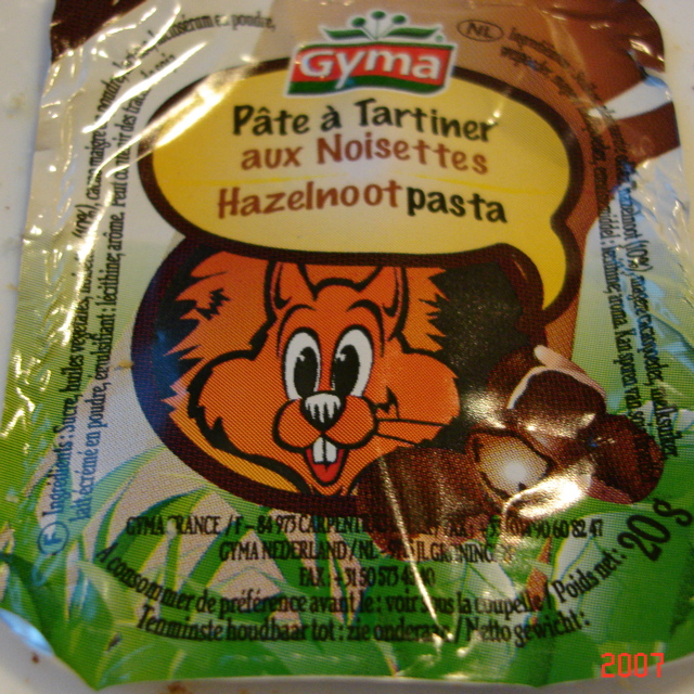 右の写真は、ユースホステルの朝食で登場した、パンに塗るチョコレート!