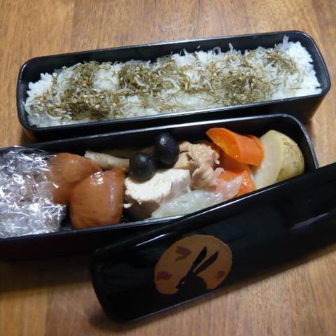 以前は、「4割引!」の日に買い込んだ「冷凍食品」を”チン”して詰めていましたが、