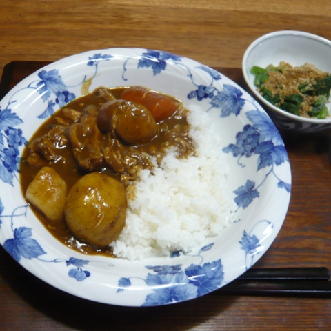ディナーは、昨日のポトフにルーを足して、カレーに。