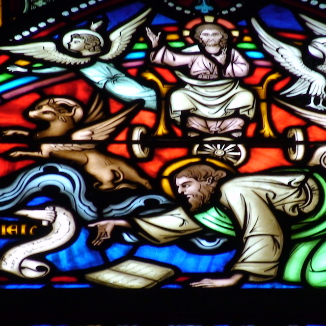 ステンドグラスには物語が描かれているようです。