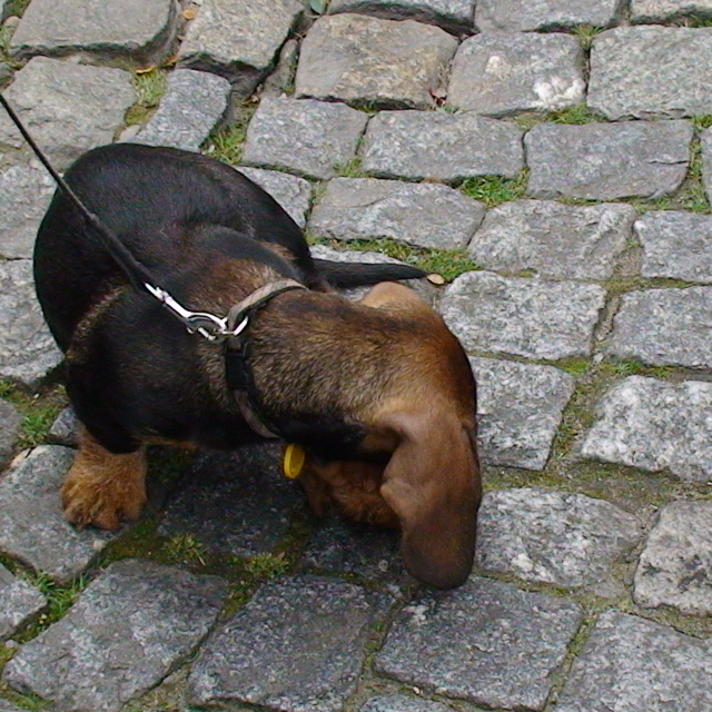 小便小僧の側で、ダックスフンドを発見!おもわずパチり!キュートです!!