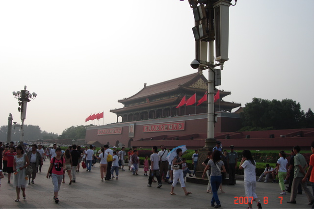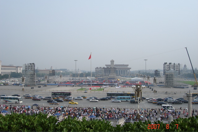 北京オリンピック1年前式典のリハーサル(本番は明日らしい)が行われていて、天安門広場へは入れませんでした。