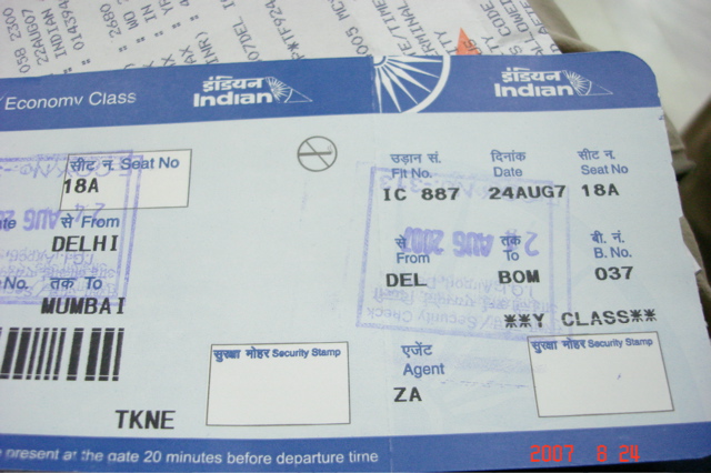 ☆「インディアンエアラインズ」 ニューデリー → ムンバイ(ボンベイ)