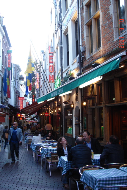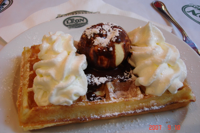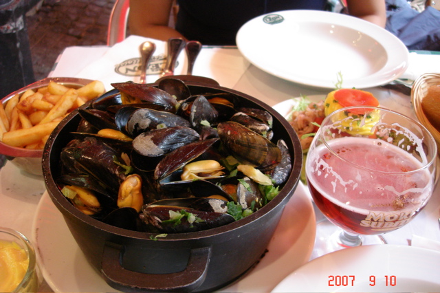 ムール貝とフリッツとビール。そして、デザートにワッフル。