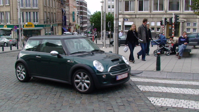 ブリュッセルの街の道路はほとんど石畳です。車道も石畳。