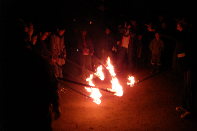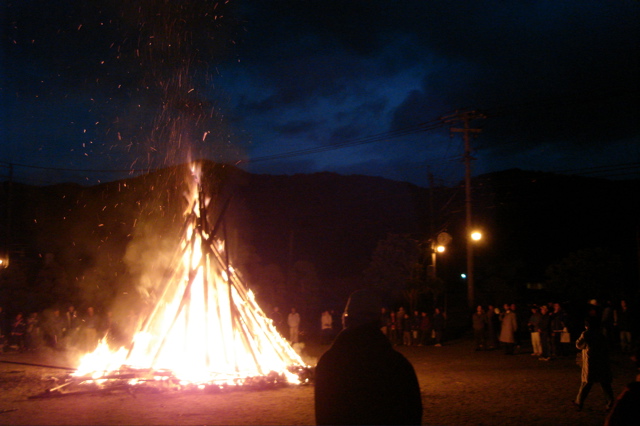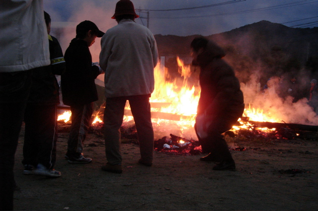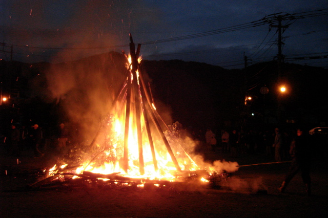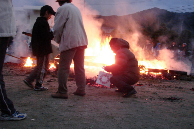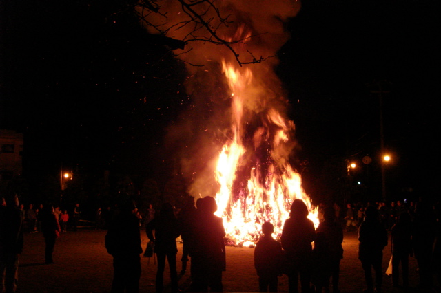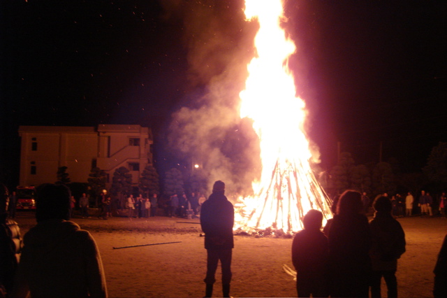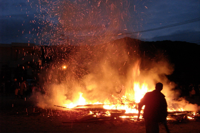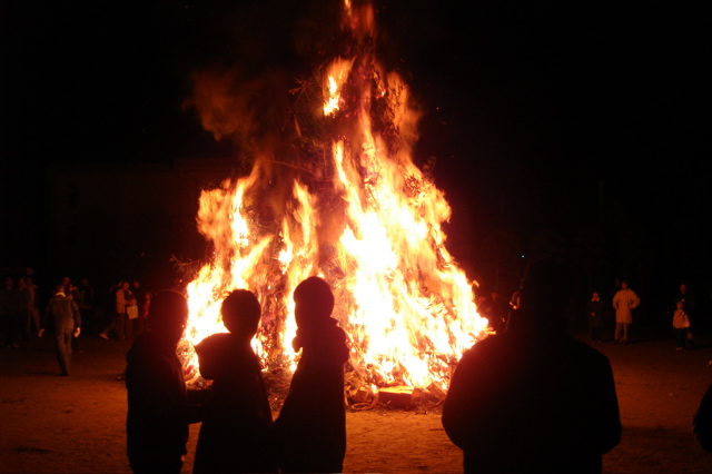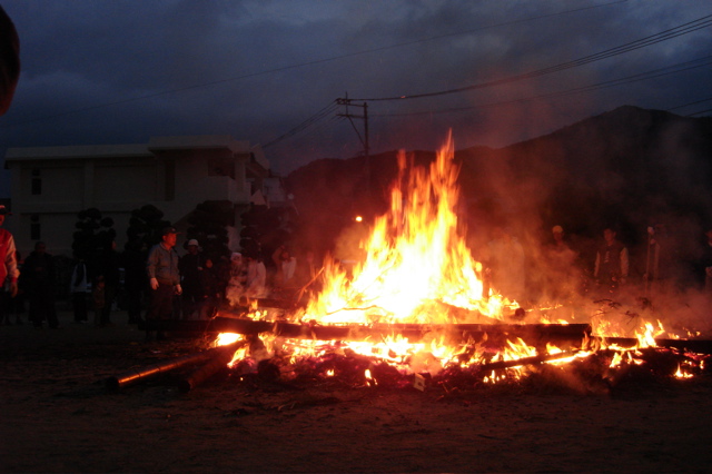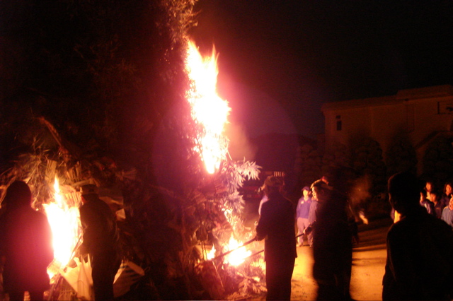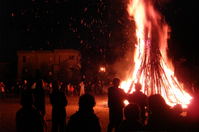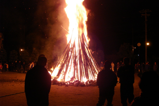 おもに子どもの行事で、正月の松飾りなどを各戸からもらい集めて焼く。